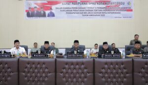 ZONATOTABUAN – Ketua Dewan Perwakilan Rakyat Daerah (DPRD) Kota Kotamobagu, Adrianus Mokoginta, memimpin rapat paripurna tingkat dua, dalam rangka pengambilan persetujuan atau penetapan Rancangan Peraturan Daerah (Ranperda) tentang Anggaran Pendapatan dan Belanja Daerah (APBD) Perubahan Tahun Anggaran (T.A) 2025.
